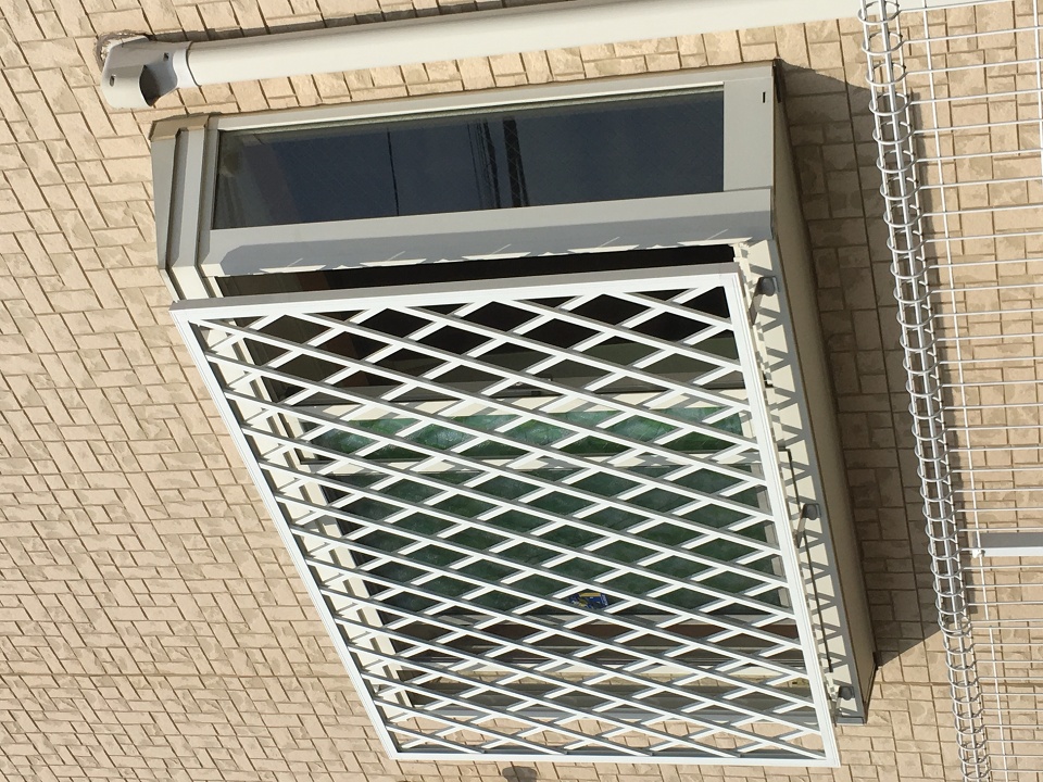 面格子を設置することにより、以下のような効果があります。【防災】 風による物の飛来、窓ガラスが割れることを防ぐ